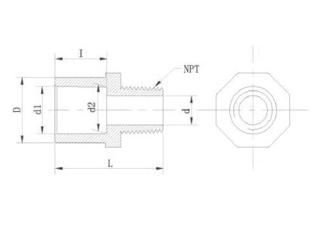 SIZE | D | d1 | d2 | I | d | L | NPT(牙/寸) |
